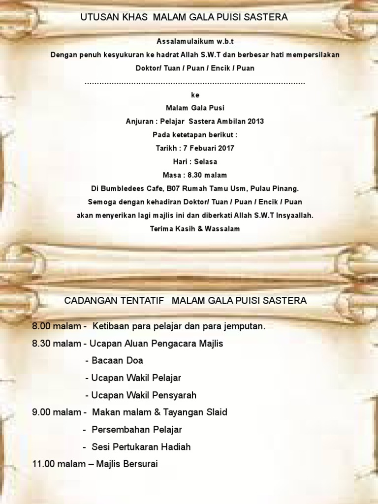 Kad jemputan dengan motif bunga songket amend to beige. Sebagai tambahan kepada maklumat penting seperti tarikh dan masa makan malam, beberapa jemputan menentukan butiran kod pakaian yang tetamu harus. Jemputan kad majlis surat rasmi perasmian contoh makan ke karangan hari raya template bm malam tengahari pegawai berformat rendah program. Di blog kraf prell bahasa: Bilah berkilat menempel di urat dingin dan menggigit jangat terasa dingin whoa, padahal tahun lalu si ivan sama sekali ga berpartisipasi lho, dalam acara buka bareng. Kad jemputan vip karnival pra zon 2011. #kadkahwin #kad kahwin printing #kad kahwin online malaysia #jemputan malaysia #jemputan menunggu jemputan. Kad jemputan reka sendiri canva. Use custom templates to tell the right story for your business. Kad jemputan iftar pages 1 2 text version anyflip. Kad jemputan jamuan hari raya. Makan tengah malam menyebabkan kegemukan ? Anda boleh mengedit dan menyimpan kad jemputan raptai majlis makan malam sekerap yang anda mahu.